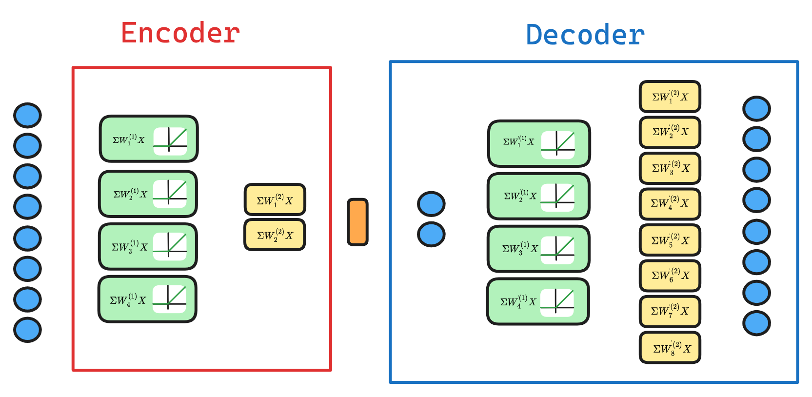 The information bottleneck — $\dim(z) \ll \dim(x)$ — forces the encoder to retain the most informative structure and discard redundancy. Unlike truncated PCA, the encoder is nonlinear and can exploit higher-order structure.