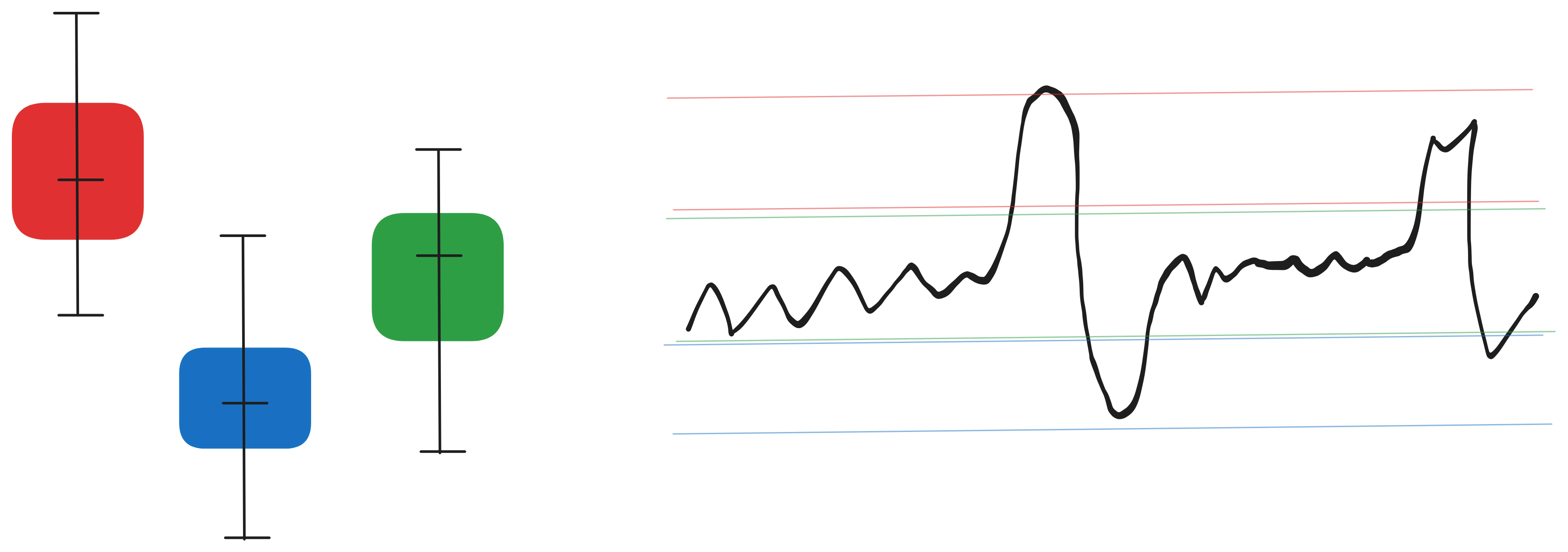 Figure 0.0: Boxplot-based group analysis (left) and time series with reference thresholds (right) for rule-based forecasting