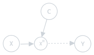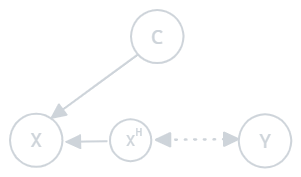2. Covariate Hidden Shift (CHS) Involves the presence of a hidden variable \(X_H\) that alters the covariates. The conditional distribution of hidden covariates given the observed covariates changes: